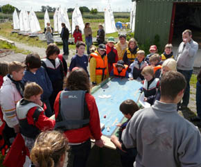 ![]() Steuermannsbesprechung vor der Regatta ![]() Zweite Wettfahrt der älteren Gruppe auf Raumschotskurs ![]() Siegerehrung am Sonntag nach der Regatta |